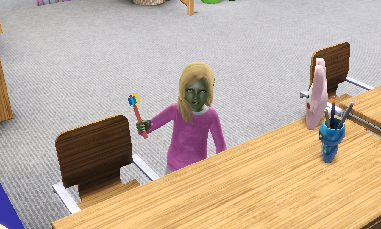 (There's my Sim self once again, getting her ass kicked at chess by an 8 year old. Yep, pretty true to life actually)